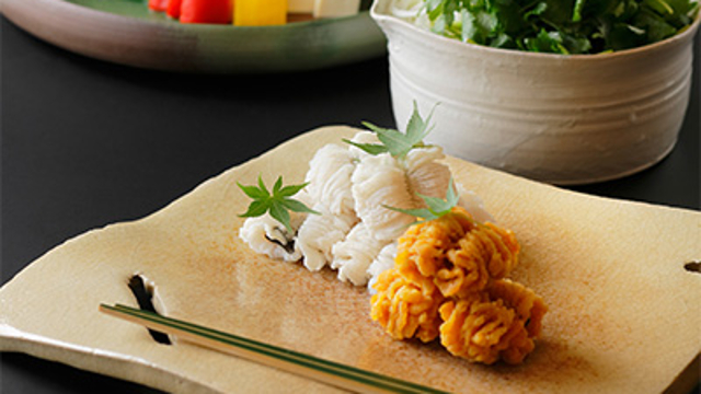訪れる人々に温もりと至福の時をもたらしてくれる【八ツ三館】。純和風の趣き溢れる佇まいは、日本家屋の素晴らしさを今に伝える文化財でもあります。旅館としてだけでなく、日帰りの食事場所としても人気を博している一軒です。厳選された食材の中でも特にこだわりの「飛騨牛」は飛騨の中でも古川エリアから産出されたものだけを買い付けしています。また、海の無い岐阜では不可能とさえ言われた海産物の養殖を成功させ、新たなブランドとして確立された「飛騨とらふぐ」も絶品です。優れた食材を使った料理長の細やかな日本料理は、五感を揺さぶる至高の逸品。大切な人が喜ぶひと時を、上質な時間が流れる個室で過ごしてみてはいかがでしょう。