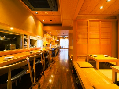 カジュアル割烹店で寛ぎながら、目の前で店主の仕事が見渡せる会席料理店