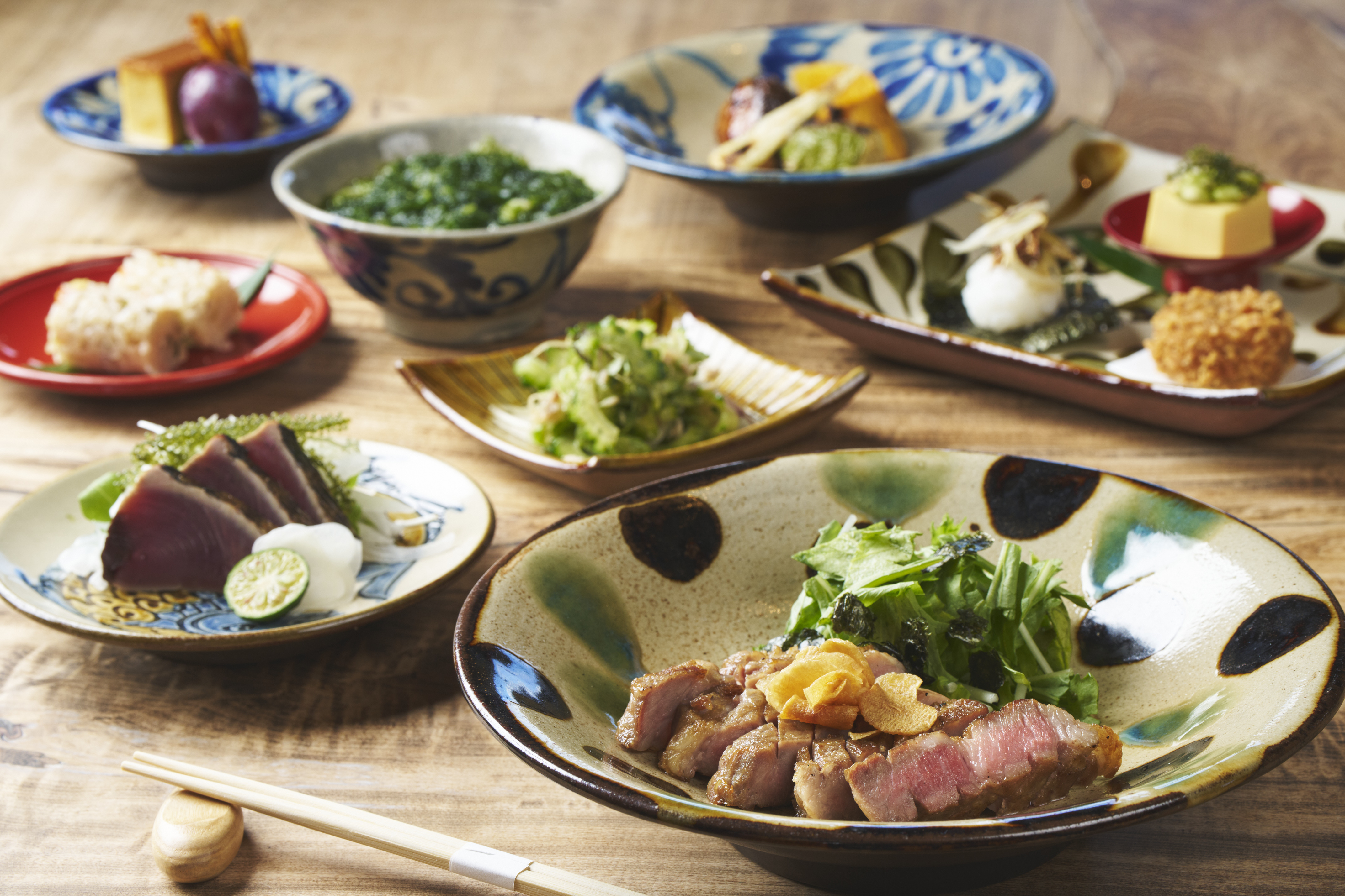 料理人の目で選ぶ旬菜旬魚と酒のマリアージュを、温かな明りが灯る和空間で