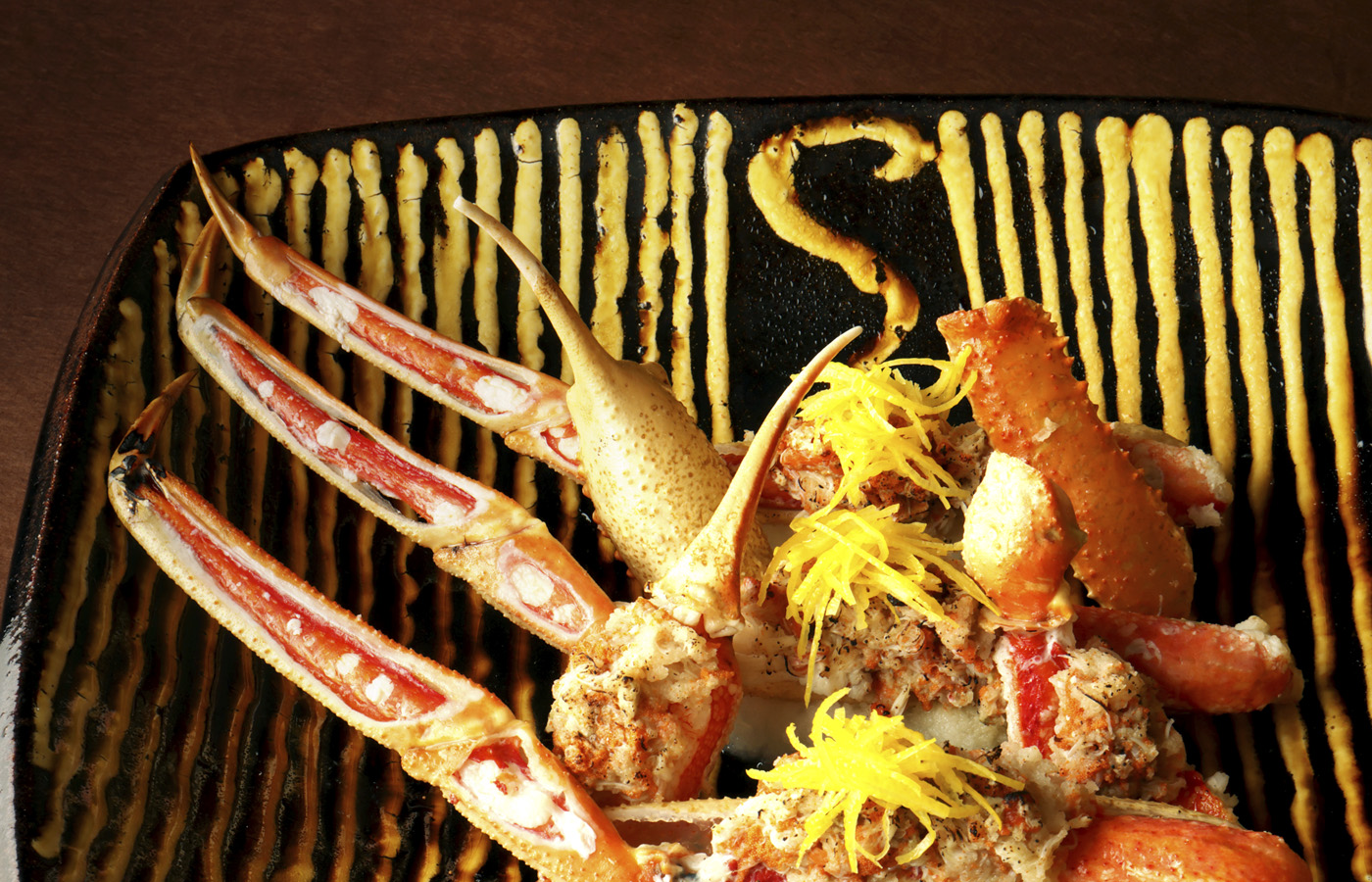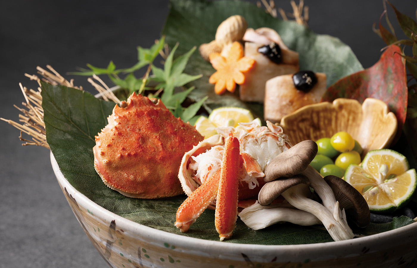 組子が美しい優雅な空間で、生け簀の新鮮な活ズワイ蟹とプレミアムな地酒を満喫