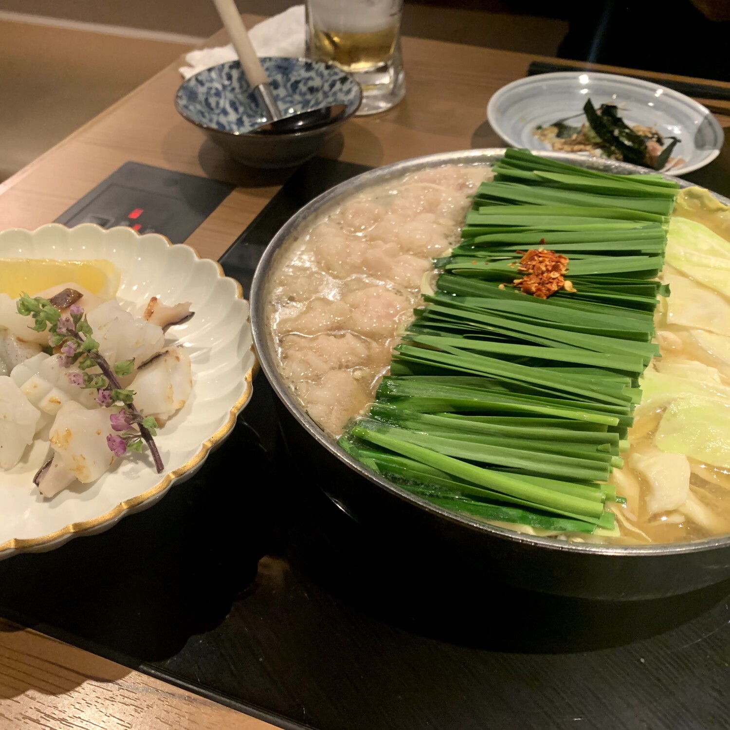 呼子直送の新鮮なイカと和牛もつ鍋が絶品で、安心してお料理をいただけます。