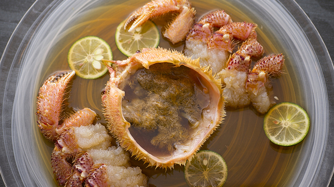 北新地にある本格和食料理店。旬の新鮮な魚介を堪能できるのが魅力です。用意されているのはコース料理のみ。コースを構成するのは旬の素材をふんだんに使用した逸品料理の数々。コース全体を通じて季節感を味わえるので、とても満足度の高いコースになっています。また、一品一品がていねいにつくられており、目を奪われるほどの美しい盛り付けも必見です。店内は木の温もりを感じられる落ち着いた空間。ゆっくり食事を満喫できます。