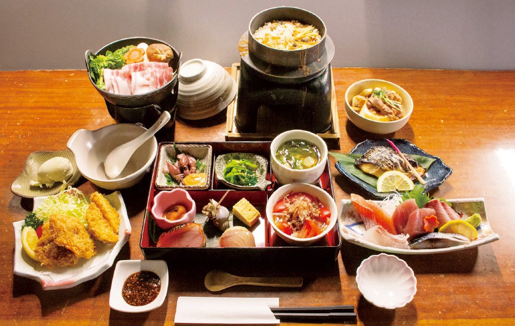 熟練の技を持つ板前が、一つ一つ丁寧に仕上げる日本料理をくつろぎの和空間で味わえる割烹料理店。目利きで選んだ旬魚や、こだわりの国産食材を使用し、すべて一から手づくりする逸品料理からは四季の息吹を感じます。注文を受けてから締める『〆鯖』や、サクサク揚げたての『天ぷら』など、その季節に一番おいしい食材を一番おいしいタイミングで提供。カウンター席で女将と会話を交わしながら、美食とともに癒・笑・粋を楽しむのも乙なひとときです。店内には完全個室があり、商談や接待といったプライベートシーンで喜ばれる事請け合い。予算や好みの料理がリクエストできるコース料理は宴席を華やかに彩ります。