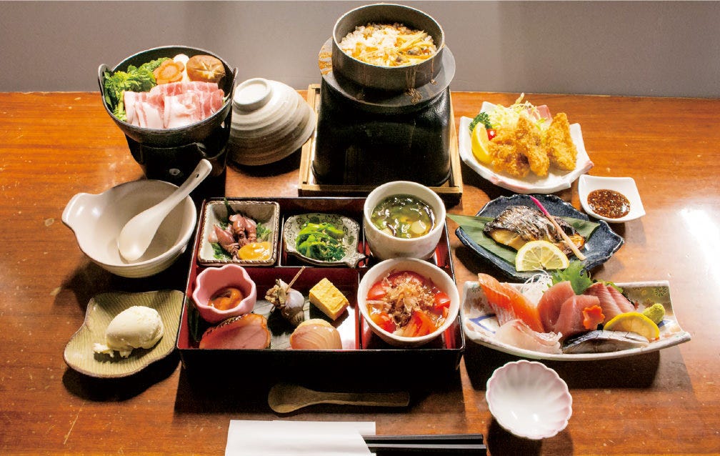 新鮮な地元の魚介類を ふんだんに使用した海鮮メニューがウリ! ランチメニューはボリュームたっぷり♪