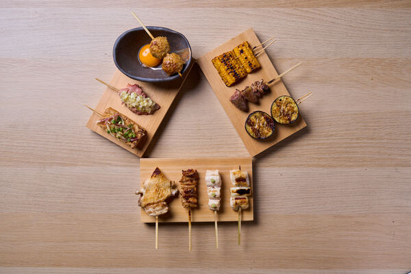 銀座8丁目の焼鳥店。地鶏を使った焼鳥と日本料理を組み合わせた独自のコースを供していて、うまい串に加え、季節の和食を楽しめます。一本一本ていねいに仕上げた焼鳥はもとより、旬の皿のおいしさと趣向も格別。ゲスト各々のペースに応じた提供のタイミングなど、きめ細かな気配りもみごとで、心地よく憩えます。