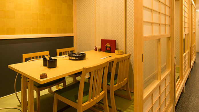 全国各地から選りすぐる食材を、テーブルの囲炉裏で備長炭を使い焼き上げる【まほろば囲炉裏 心斎橋】。従来の焼肉から進化した味わい方として提案されるのが同店の囲炉裏焼きです。名物の『ハラミ』は兵庫県佐用町から入手。ふっくらと仕上がり、素材の旨みがしっかりと引き出されています。農口尚彦研究所の日本酒やシニアソムリエがセレクトするワインなど、ペアリングを楽しめるラインナップも魅力的です。蔵をイメージした店内には、完全個室席とキッチンと対面式のテーブル席が備わっています。和紙を貼った壁紙や有田焼の器など和の趣き溢れる空間で、ゆったりとしたひと時を過ごしつつ美味に舌鼓を。