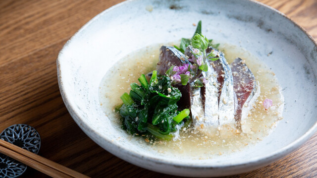 【あずまや(四阿)】は玄界灘の旬魚、香りも旨みも上質な出汁、和食との相性抜群の地酒を存分に堪能できる和食料理店。『本日のお刺身盛り合わせ』は絢爛豪華な海の幸が目白押しです。出汁は昆布やいりこ・鰹節で毎朝丁寧に引き、出汁だけでも美味しいと思わず唸るほど。麺だけでなく炊き合わせ、出し巻き玉子などにもたっぷりと配合。さらに40種を越える日本酒が脇を固め、上質な時間を演出しています。落ち着いた雰囲気が漂う空間は、接待や会食や、さらには気心知れた仲間とのひと時に最適。臨場感溢れるカウンターや優美な個室なども完備されており多岐に渡るシーンに訪れたい上質な料理店です!