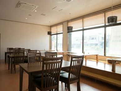 【読谷Gala青い海の施設内】店内・テラス、パノラマに広がる オーシャンビュー!アメリカンスタイルのピザ食べ放題¥1,990