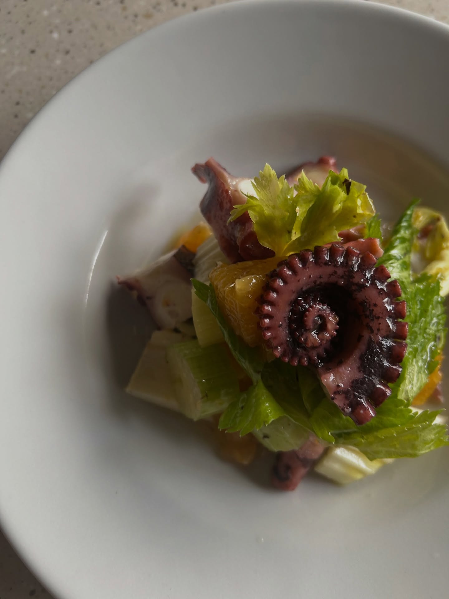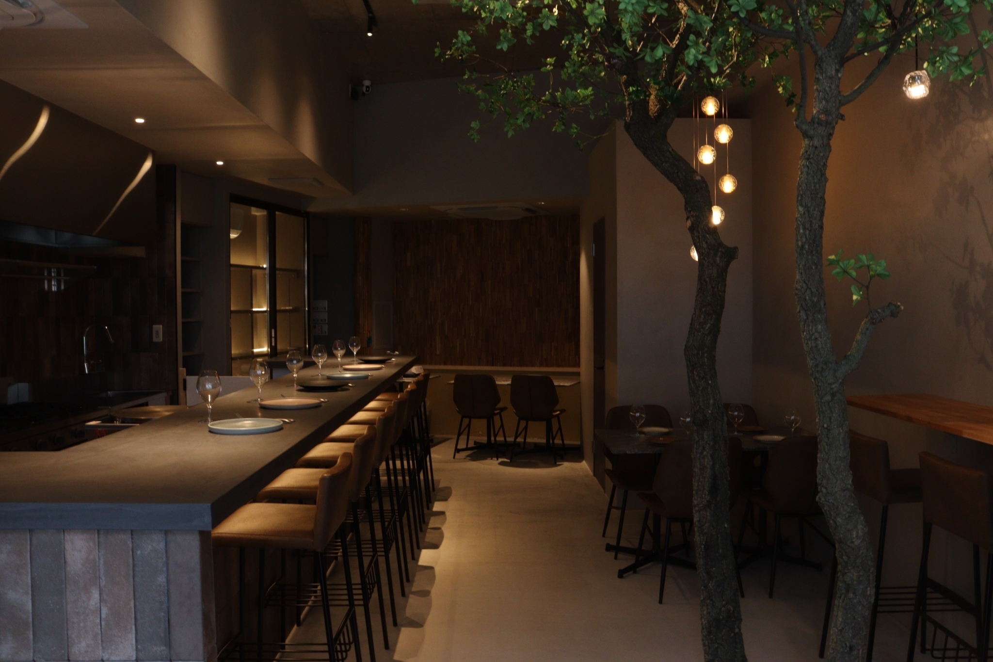 「余計な手を加えずシンプルに」をモットーにしている古井繁規シェフ。9年間料理長を務めていた新宿三丁目【OSTERIA ORIERA(オステリア・オリエーラ)】では、研ぎ澄まされた味わいの魚料理が評判となり、予約困難になるほどの人気を誇っていました。その後南青山【RISTORANTE PEGASO(リストランテ・ペガソ)】で2年間料理長を務め、今年2月、新宿三丁目で独立を果たしました。雑多なイメージのエリアですが、雑居ビルの4階、扉を開ければ幅広のカウンターやテーブルにゆったりとした椅子を配した大人の隠れ家的雰囲気。おまかせコースに、シェフが修業した北イタリアのワインを合わせて心ゆくまで美食を堪能することができます。