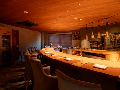木々に囲まれた隠れ家で、至福のひと時を過ごせるのがフレンチレストラン【Restaurant GOSHIMA】です。素材選びの要となるのが「旬」。福岡を含め九州各地の食材の目利きをし、長浜市場へシェフ自ら足を運び買い付けします。ヨーロッパならではの旬もさまざまに取り入れ、コースへと構築。新鮮で旬の素材をふんだんに用いたシェフが織りなす料理は、まさに芸術品です。多彩なペアリングを楽しめるドリンクメニューも充実。店内は、木の温もりが広がり落ち着いた雰囲気に包まれています。大切な人との特別な時間にふさわしく、接待やハレの日の食事会にも最適です。