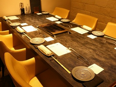 店主が厳しい目で選び抜いた高級黒毛和牛は冷凍肉は一切使わず、すべてチルドの生肉を使用! 毎日ブロックの塊から一枚一枚切り分けてご提供するこだわり! 他にもホルモンやチヂミ、チャンジャなどお酒好きにはたまらない品がラインナップ、訪れる方の舌を楽しませてくれます。お酒はプレミアムワインはもちろん、ビールや日本酒、本格焼酎も各種揃っています。また店内は8室すべてが個室で4名様~14名様までご利用いただけます! まわりを気にせずお食事ができますので、大切なお客様の接待やご家族尾での会食、デートなどに…、宴会などは人数、予算に応じてご相談承りますのでお気軽にご連絡下さい!