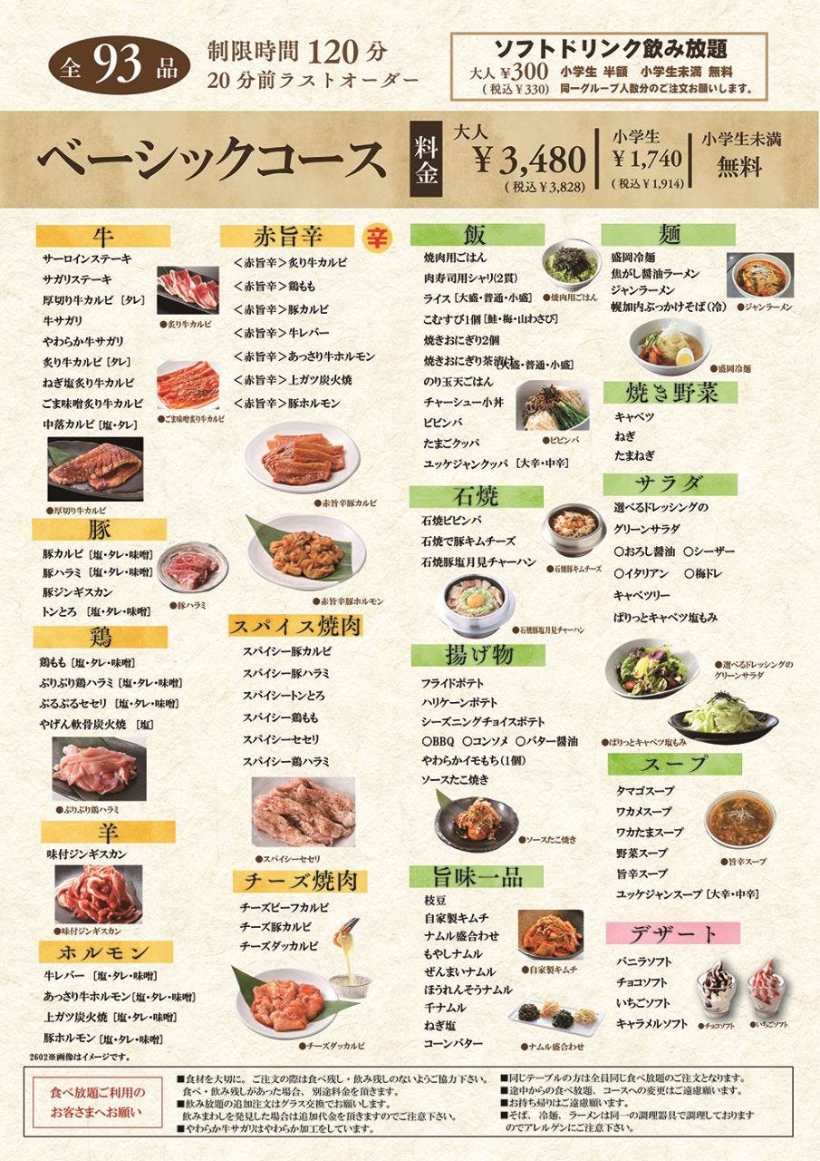 ベーシックコース☆120分食べ放題全93品!3,828円(税込) 小学生1,914円(税込)