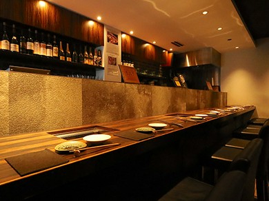 ライブ感を楽しめるカウンター席のみ。普段使いにも特別な日にも使いやすい鉄板焼店