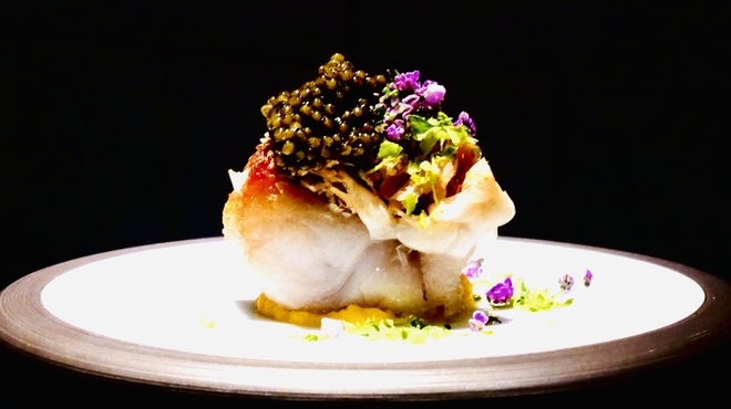 JR御徒町駅や東京メトロ湯島駅からすぐという立地の、記念日や誕生日のお祝いに最適な鉄板焼店。鉄板のカウンターの目の前でステーキなどの調理をライブで魅せてくれます。ともすれば高価なお店が多い鉄板焼きのスタイルですが、こちらは料理人もスタッフも気さくな対応。カジュアル感覚で多彩な料理を楽しめます。しかも、パフォーマンスの素晴らしさ以上に、メニューはダブルメイン(メイン級の料理が2つ)という贅沢な内容。イセエビや鮑など高級素材がお得に楽しめ、ステーキに使われる黒毛和牛は、A5ランクの肉を熟成させるというこだわり。