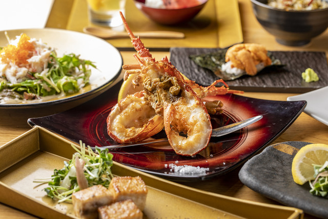 厳選した神戸牛を、紀州備長炭を敷いた特製の炉釜で焼き上げる『神戸牛炉釜ステーキ』が看板メニュー。火元は900度、炉釜の温度は180度を保ち、遠赤外線でじっくりと火を入れることで、表面はサクサク、中はしっとり柔らかく仕上がります。炭火独特の香ばしい風味も美味しさの秘訣。シャトーブリアン、サーロイン、フィレ、ランプ、イチボなど、各部位の食べ比べも楽しみです。フレンチをベースとした繊細な料理の数々も秀逸。オマール海老やキャビアなど、高級食材を使った贅沢な逸品が供されます。店内には、ライブ感あふれるカウンター席のほか、洗練された個室も完備。非日常の美空間で、優雅なひとときに酔いしれてみませんか。