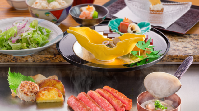 料理を彩る和牛ヒレと日本食材。色・音・匂い、全てが五感を刺激する