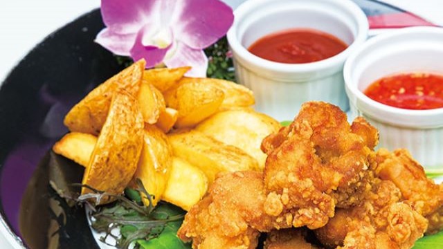 沖縄県産食材を使ってアレンジされた創作料理を、喧噪から離れた那覇の街中で堪能