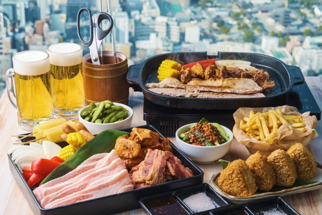 イタリア料理が食せる【Bar e Trattoria QUATTRO】。ラグジュアリーな空間が魅力で、パーティー使いに最適なお店です。石窯で焼き上げる「ピッツァ」やジューシーな「ステーキ」、見た目にもかわいい「スイーツ」など、多彩な料理がズラリ。新作料理も続々登場していて、詳細はInstagramやTwitterで紹介されるので要チェックです。アルコールはワインをメインに取り揃え、お酒が飲めない方でも満足できるようにとノンアルコールドリンクも豊富に用意されていて、子どもから大人まで年齢問わず楽しめます。貸切の際はスクリーンとプロジェクターを無料で貸し出してくれるので、気軽に相談してみては。