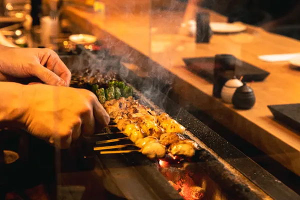 店内中央に、ひょうたんを模した囲炉裏を設置した【炉端 ひょうたん 双葉荘】。大きな円形の炉では、昔ながらの「原始焼き」技法を用い、炭火を囲むように串に刺した食材を焼き上げます。一方、小さな円形の炉では、網の上に食材を並べて炭火焼きに。囲炉裏を中心とした吹き抜けの設計なので各席からは調理風景を望め、ライブ感を満喫できます。また、季節ごとの日本酒や、手作業で漬け込んだレモンやライムを使った爽やかなサワーなど多彩なドリンクも魅力。古民家をリノベーションした趣きある店内は、最大100名まで貸切可能で、1階は45名、2階は55名まで収容できます。接待、友人との食事、デート、記念日などさまざまなシーンに最適です。