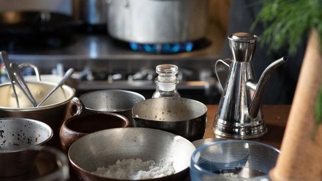 料理に使われる食材やアルコール、食器や織物など鹿児島の素材を活かしたレストラン