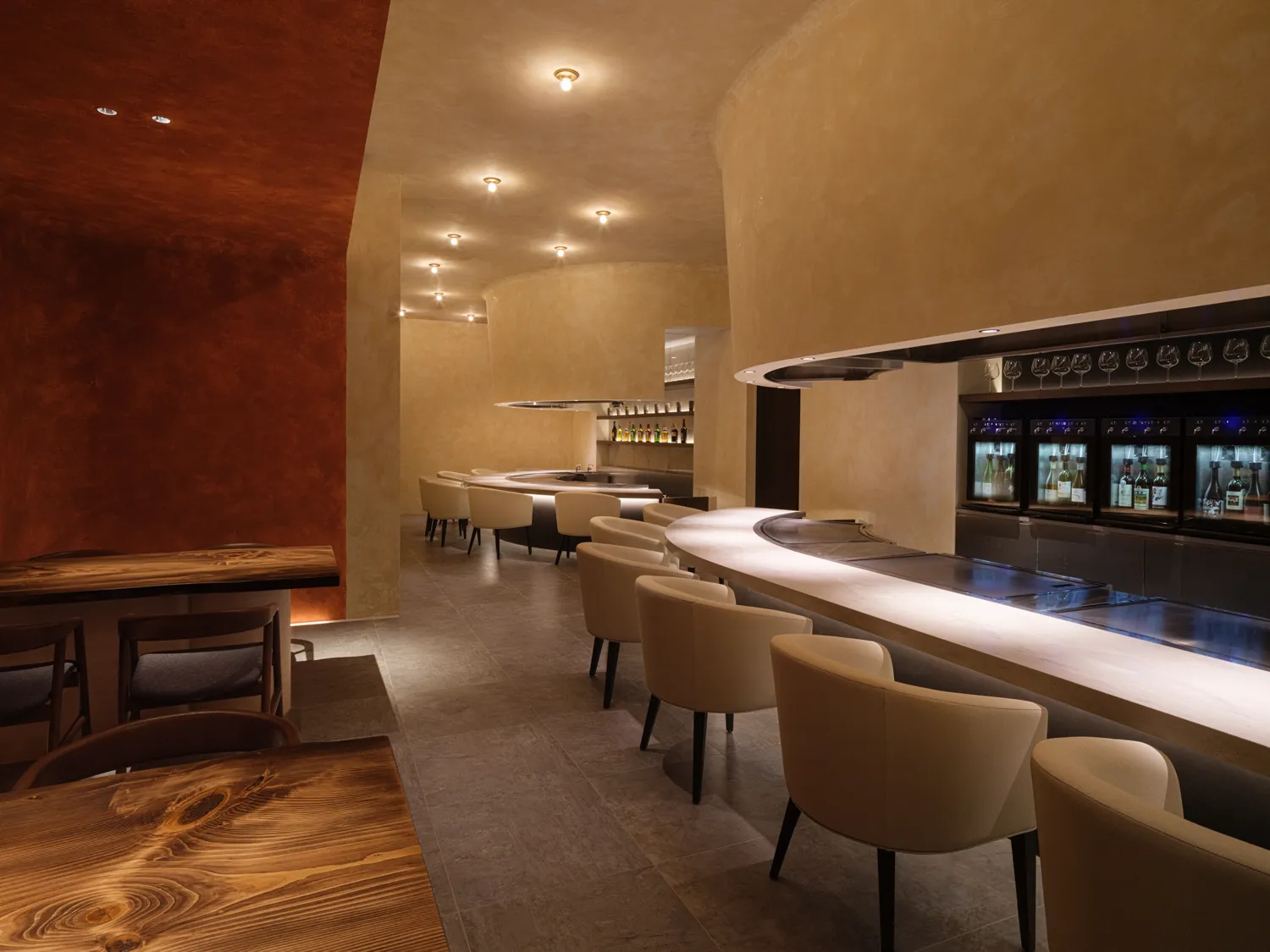 関内駅から徒歩2分。もとは馬車道の屋台から始まった【鉄板焼 裕】は、選び抜いた高級食材を肩肘張らずに味わえる人気店です。A5ランクの黒毛和牛ステーキのほか、水槽から取り出したばかりの鮑や伊勢海老、オマール海老のグリルも絶品。目の前の鉄板で豪快に焼き上げるため、調理の音や香ばしい匂いが五感を刺激します。店内は厨房を囲むL字型のカウンター席のみ。靴を脱いでくつろげる掘りごたつスタイルで、床暖房も完備されています。落ち着きのあるシックな雰囲気も心地よく、普段使いはもちろん、大切な接待や記念日デートにも最適。店主の鮮やかな腕さばきを眺めながら、記憶に残る贅沢なひとときを楽しんでみませんか。