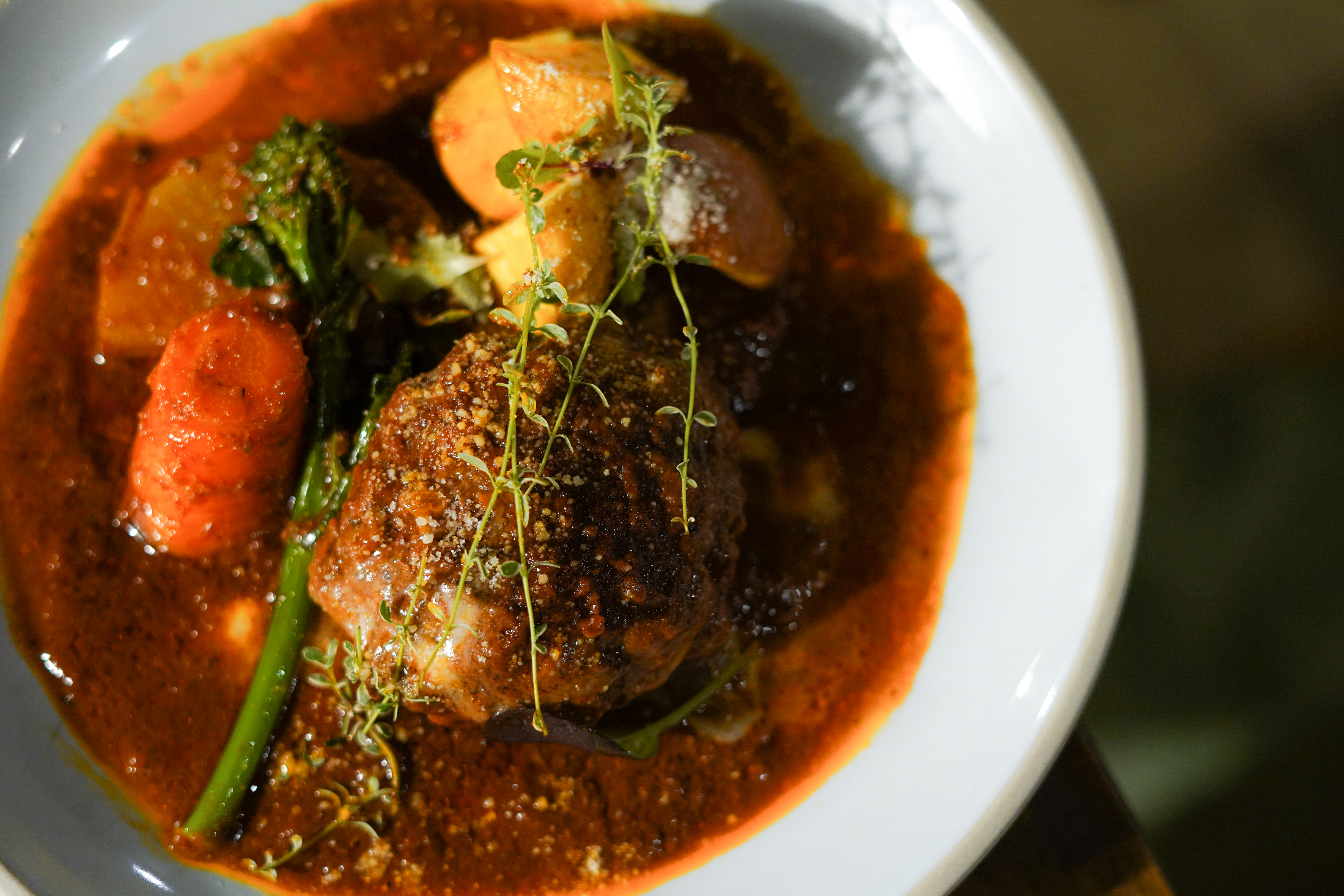 江戸時代に建てられた古民家の保存を目的に、当時の姿をできる限り残してリノベーションした風情あふれる空間で、本格イタリアンを楽しめるのが【宿場町 矢掛の 侍イタリアン】。伝説の名店から製法を受け継いだ『侍が恋したハンバーグ』やもちもち食感がたまらない生パスタなどが味わえます。「矢掛町や井笠近隣地域を食を通じて元気にしたい」と語るのは笑顔が素敵な宮崎シェフ。寄付や子どもたちの食事支援にも取り組む「侍」です。店舗奥には和風旅館の客室を改装した座敷席もあり、大人数や小さなお子さま連れでも安心。飲みやすく悪酔いも少ない自然派ワインや、ワインと同じ製法を守って醸造されたノンアルコールワインも揃っています。