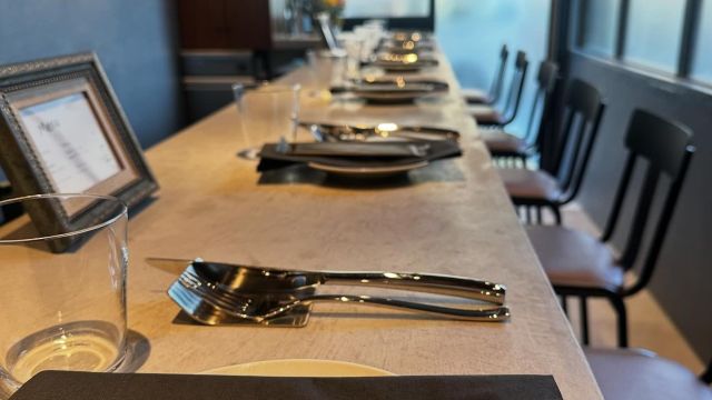 カウンター8席の季節の食材を使用したフランス料理とワインのお店