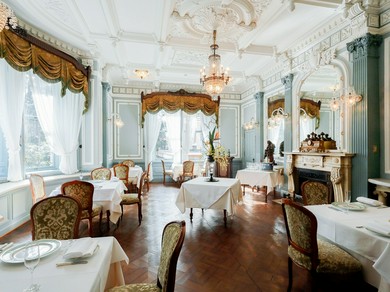 緑深い京都東山の麓に佇む、国指定重要文化財 長楽館(旧村井家別邸)。その洋館の中にあるのが【長楽館FRENCH LE CHENE】です。シャンデリアが灯るヴィクトリア調の優美な空間と、伝統を核に現代のアレンジを加えた料理の饗宴。ディナー、ランチ共にコースのみの提供となり、滋賀や京都大原の新鮮な野菜、丹波牛・七谷鴨・ぐじなどの京の食材を、フランス料理の手法を用いて表現しています。そんなシェフこだわりの料理を彩る食器も特別につくられたもの。季節の料理や食材、そして、それにふさわしい器との調和もまた、愉しみの一つです。館内では不定期ながらピアノの生演奏も。ピアノの音色に耳を傾けながら、優雅な時間を過ごせます。
