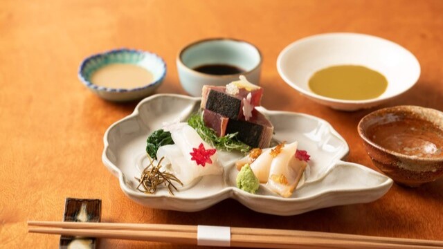 新鮮さと旬を大切に自家農園で育てられる有機野菜や「中勢似」の熟成但馬牛。吟味を重ねた食材の魅力を引き出した技で、訪れる人を魅了し続ける【御料理 いはら田】。中でも『八寸』は、あえてコースの中盤に提供される特に注目したい要的な存在です。食材のみならず、調理の手法や味付け、彩り、そして器に至るまで店主のこだわりが集結しています。加えて、天然物にこだわり毎朝買い付けをしている魚介は『お刺身』や『焼き物』で登場。お造りには醤油を一切使わず独創的な味の掛け算がほどこされ、素材の持つ本来の旨みや奥深さを感じさせてくれます。和の趣溢れる心地よい空間で、枠にとらわれない創意工夫の珠玉の料理に出合えるお店です。