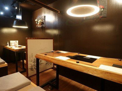 鹿児島黒牛をはじめ、最上級の黒毛和牛を達人が目利き。他ではあり得ないほどリーズナブルに、和牛焼肉をお楽しみいただけます。新地での素敵な夜をご堪能ください。・黒毛和牛肉匠 善コース 9,000円→6,980円。・黒毛和牛塩焼コース 9,000円→6,980円。・黒毛和牛肉匠 匠コース 12,000円→8,980円。・黒毛和牛肉匠極コース 15,000円→12,000円。・特選黒毛和牛のしゃぶしゃぶコース 8,500円→6,980円。・特選黒毛和牛のすき焼きコース 8,500円→6,980円。大人数で楽しまれる宴会を行う際は本邸の堀ごたつ席。少人数でのお食事やデート、接待などは、別邸の個室がおすすめです。