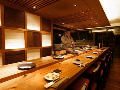 看板も出ていない、完全予約制の大人の隠れ家的お店。メニューはなく、店主がその日のおまかせ料理を提供します。全国を自ら歩いて生産者と信頼関係を築きながら見つけた厳選食材は、格別のおいしさ。時期によって福岡、淡路島、羽田沖のものを使用している『こはだ』は、脂ののり方によって、塩加減も微妙に調整します。「煮詰め」と「塩」の両方が味わえる『穴子』も、ぜひ食べたい逸品。お一人様に人気のカウンター席は、料理人との会話も楽しみの一つ。カップルだけの貸切も可能だから、特別なデートにも。2人、4人、6人用の掘りごたつ式の個室では、『あんこう鍋』や『ぶりしゃぶ』『たこしゃぶ』『牡蠣しゃぶ』も楽しめ、接待にも最適。