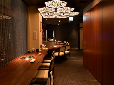 当店で提供するお肉は全て国産黒毛和牛を使用しております。きめ細やかな肉質と甘みのある脂が特長。そんな選りすぐりの牛肉を、焼肉やしゃぶしゃぶ、すき焼きで楽しめるお店です。35年以上の経験を持つ料理長が、熟練の技と目利きで肉本来の美味しさを追求。焼肉はもちろん、牛タンのしゃぶしゃぶ、自家製の割り下で食べるすき焼きも絶品です。料理によく合う世界各国のワインも充実。ほかにも、多彩なニーズに対応するお酒が揃っています。店内は高級感のある雰囲気で、半個室タイプのテーブル席のほか、完全個室の掘りごたつ席も完備。ゆったりとしたカウンター席も用意され、接待やデート、記念日のお祝いなど、特別なシーンに最適です。