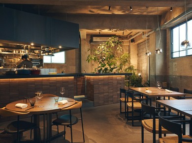 2021年9月に西麻布から移転。古い工場跡をリノベーションした店内は大人の秘密基地と言った佇まい。フレンチをベースにしつつ時に日本、中国など世界各国の要素も交えた料理をアラカルトでもコースでも自由に楽しめるカジュアルなダイニングスペースと、キッチンを間近に斉藤貴之氏の才気溢れる料理をお任せで堪能するシェフズカウンターが用意されています。「伝統的な手法に取って替わる新しいやり方」という意味を持つ“オルタナティブ”を店名に掲げている斉藤氏。国内外で様々なタイプのフレンチの名店で働き、古典の基礎、料理のロジックをしっかり習得した上で、新たに独自の世界を構築しようとする勢いを店作りや料理から感じられます。