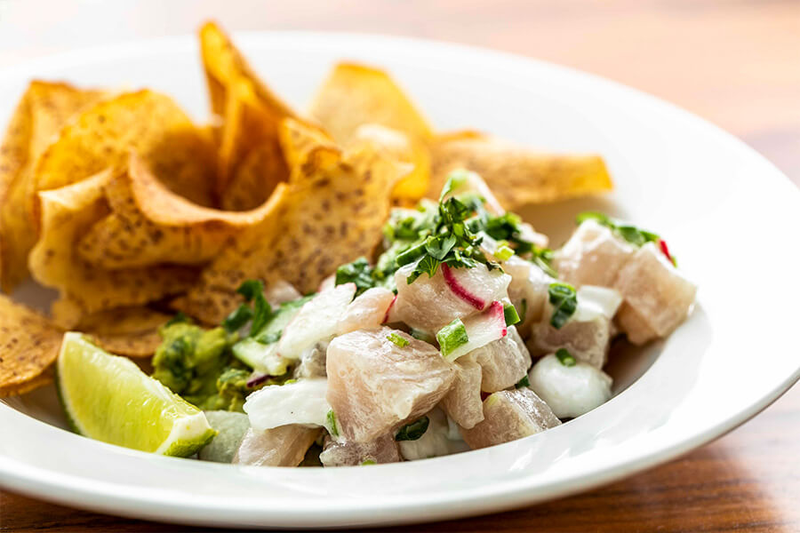 『フレッシュ・ハワイアン・フィッシュ・セビーチェ($16)』は漁師に直接依頼し、その日に上がった魚を使用している
