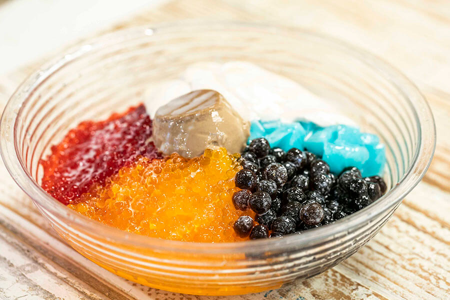 食後に出てくるサービスの『シェイブアイス』。たっぷりのかき氷の上に、タピオカ、杏仁豆腐、プリン、練乳など、ボリューム満点!