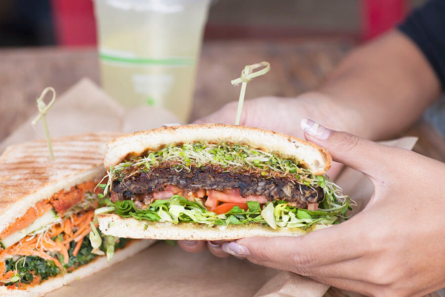 黒豆と野菜、ナッツで作られた特製のヴィーガンパテを挟んだ『スプラウトイッチ($10.50)』