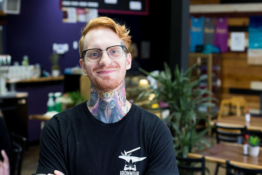 元気な女性スタッフが多いキッチンを明るく取り仕切るマネージャーのジョーダンさん