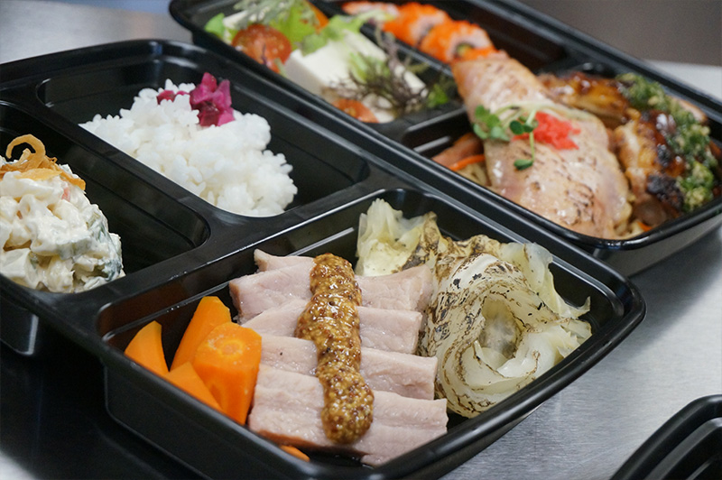 照り焼きチキンや豆腐サラダ、巻き寿司が入った『ゴチ・ランチセット』。数種類の食材が調理された弁当は、単なるプレートランチの味を超えている!