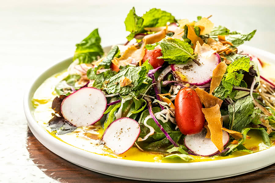 重厚なテーブルや壁紙など、インテリアの彩りは華やかであるのに落ち着いた空間。母から受け継いだというミャンマー料理の数々はオーセンティックであるのに、今の時代にもしっくりと馴染む。伝統料理のひとつである『新生姜のサラダ』には香ばしくローストしたココナッツを入れて食感も味もハワイ増し、その上盛られた皿は上品で麗しい。この店はシェフの持って生まれた美的センスと食へのバランスが絶妙に調和しているのだ。